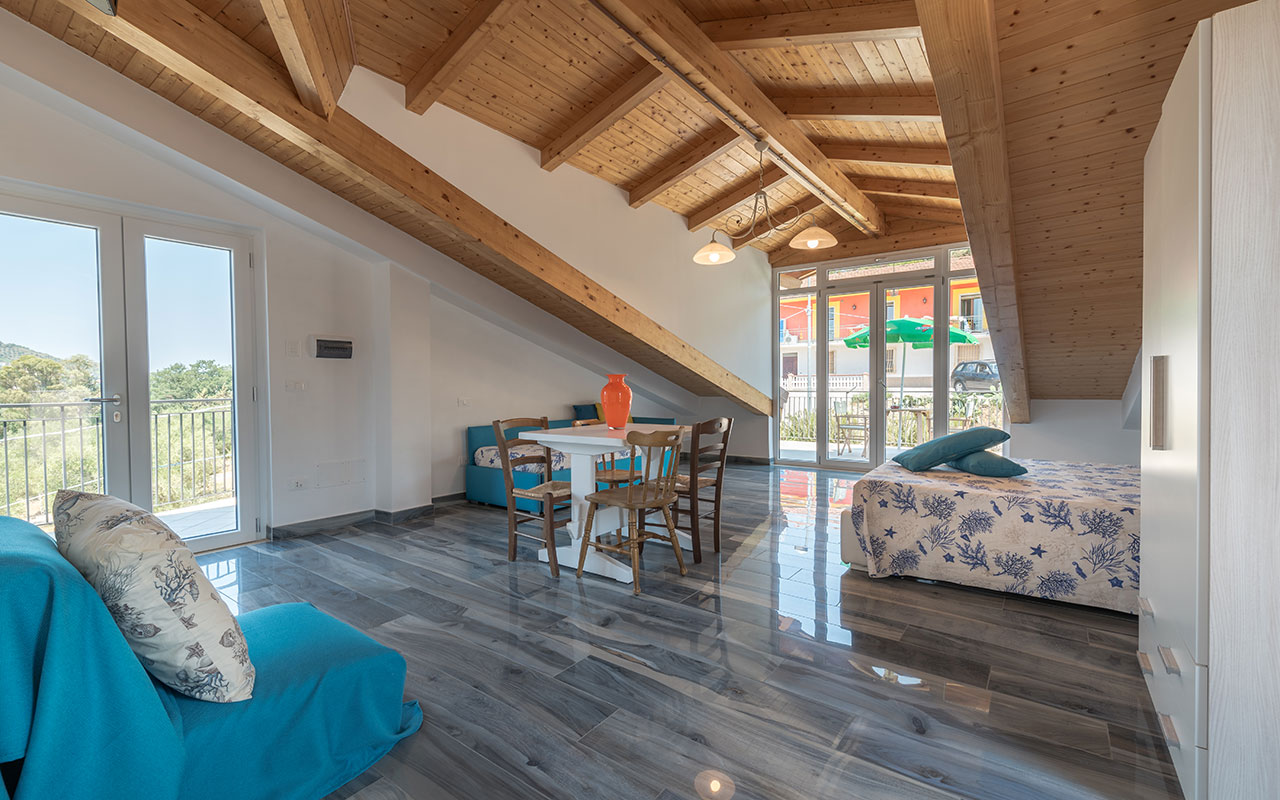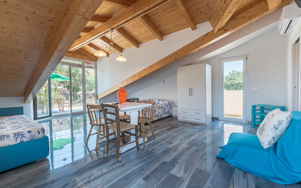 Nella struttura sono presenti anche 2 appartamenti autonomi con cucina abitabile, Uno con terrazzo e uno con giardino. Ogni appartamento può ospitare 5/6 persone. A disposizione degli ospiti infine, un ampio spazio aperto per il deposito dell’auto.
